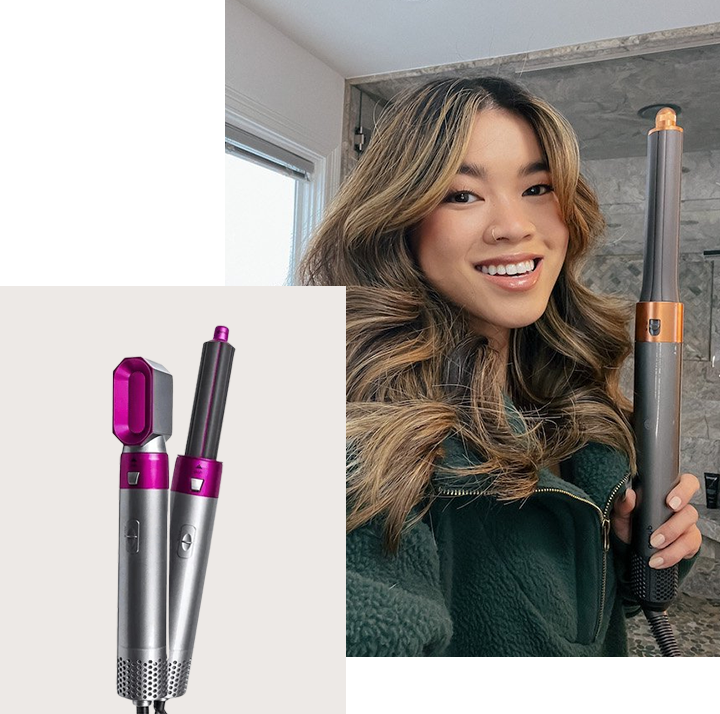 Hair Curler is a negative ion hair dryer tool that combines blow drying and a styling brush, featuring five interchangeable brush attachments for straightening, curling, fluffing, and massaging the scalp. Made from ABS+ environmentally friendly aluminum alloy, it uses advanced negative ion technology and a ceramic coating to reduce frizz and provide salon-perfect results.